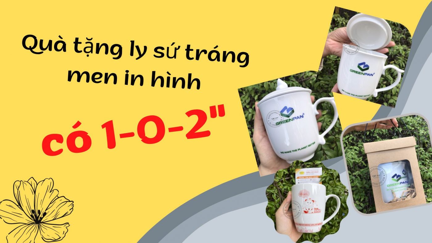 Quà tặng ly sứ tráng men in hình có 1-0-2