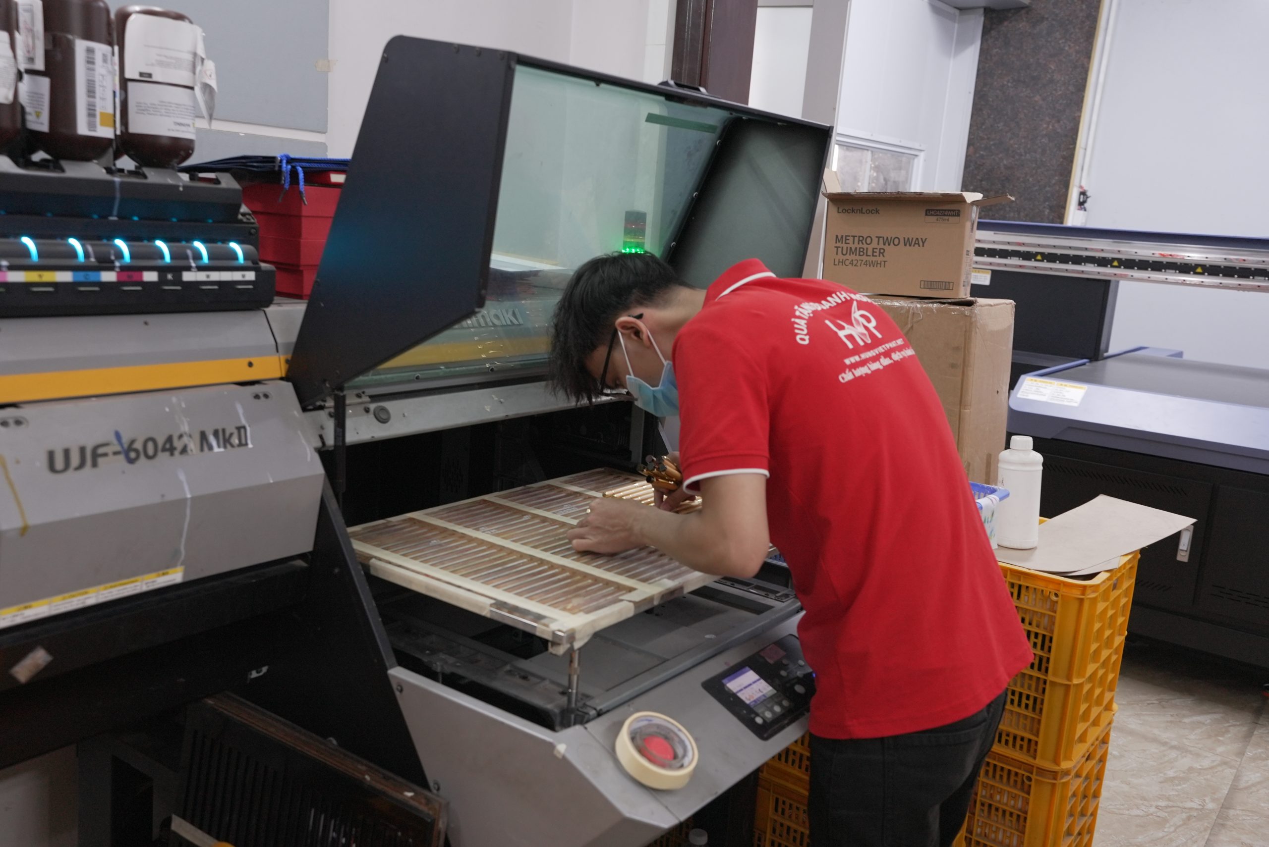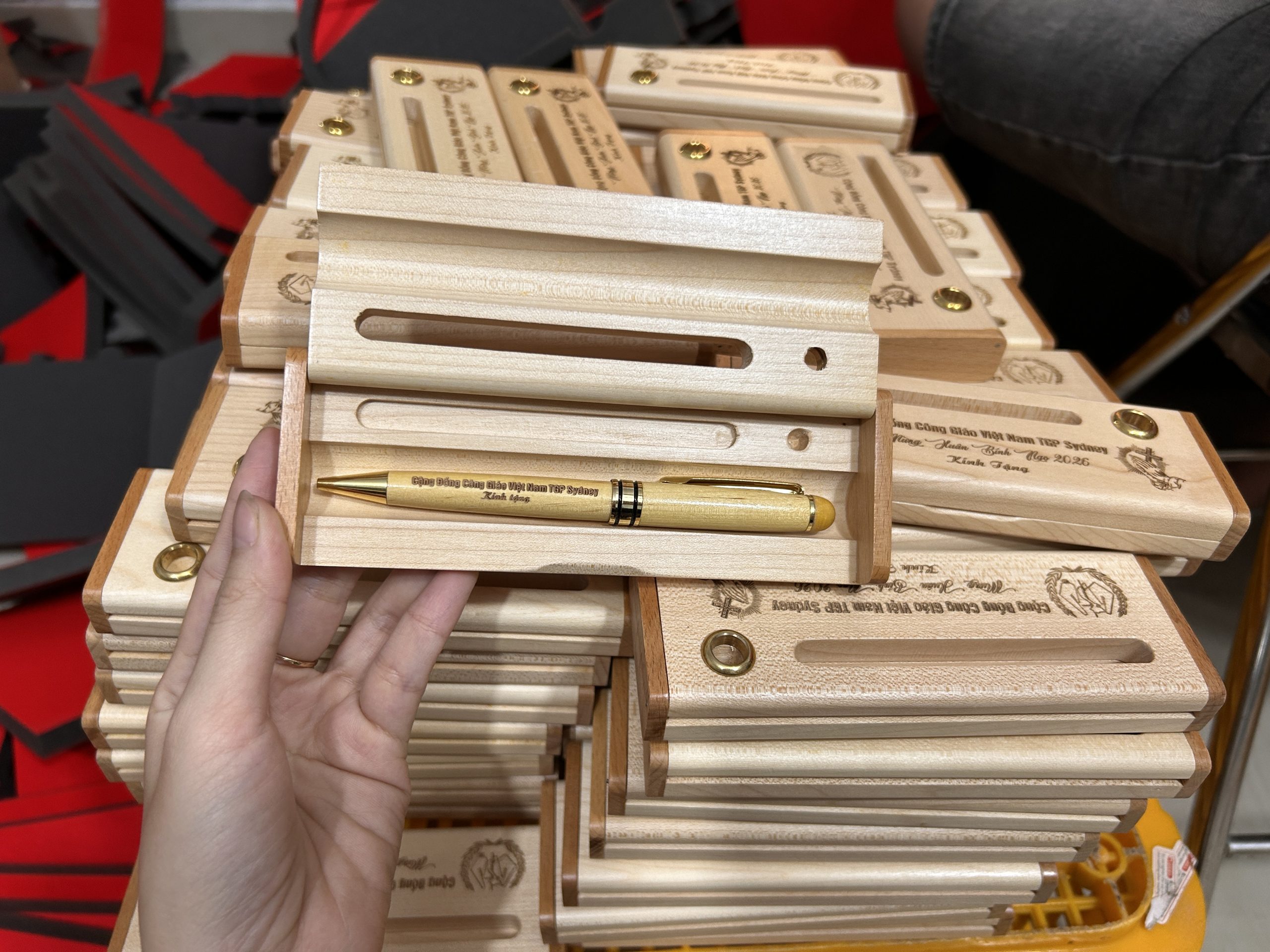 - Hưng Việt Phát nhận in logo thương hiệu theo yêu cầu bằng các công nghệ như in UV, in lụa và khắc laser sắc nét, giúp logo hiển thị rõ ràng, bền màu và tạo dấu ấn chuyên nghiệp trên từng sản phẩm.