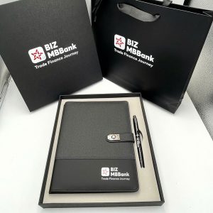 Bộ quà tặng Giftset gồm sổ da, ví, ví namecard da (Giftset) phù hợp với tất cả các đối tượng khách hàng công sở, làm việc trong văn phòng, với thương hiệu của doanh nghiệp. Sổ tay có bìa làm bằng da với thiết kế sang trọng, khách có thể chọn nhiều màu da khác nhau ví dụ như hồng, xanh, vàng, đỏ, đen, tím … Dùng công nghệ dập logo để dập trực tiếp trên các sản phẩm, dùng công nghệ khắc laser để khắc trực tiếp logo và tên doanh nghiệp. Khách có thể đặt bộ 2 sản phẩm này trong hộp giấy mỹ thuật có ép kim logo để tăng thêm giá trị quà tặng. Quà tặng này rất hữu ích để tặng khách hàng trong lĩnh vực giáo dục, y tế… sẽ thu hút thêm doanh thu từ khách hàng mới hoặc tăng cường mối quan hệ với các đối tác lâu năm.