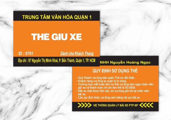 Hưng Việt Phát chuyên sản xuất và in thẻ nhựa giữ xe với công nghệ hiện đại, đáp ứng mọi yêu cầu về kích thước, màu sắc, nội dung in ấn và số lượng. Chúng tôi có thể tích hợp mã vạch, mã QR hoặc chip từ để tăng tính tiện lợi và bảo mật trong quản lý bãi xe.