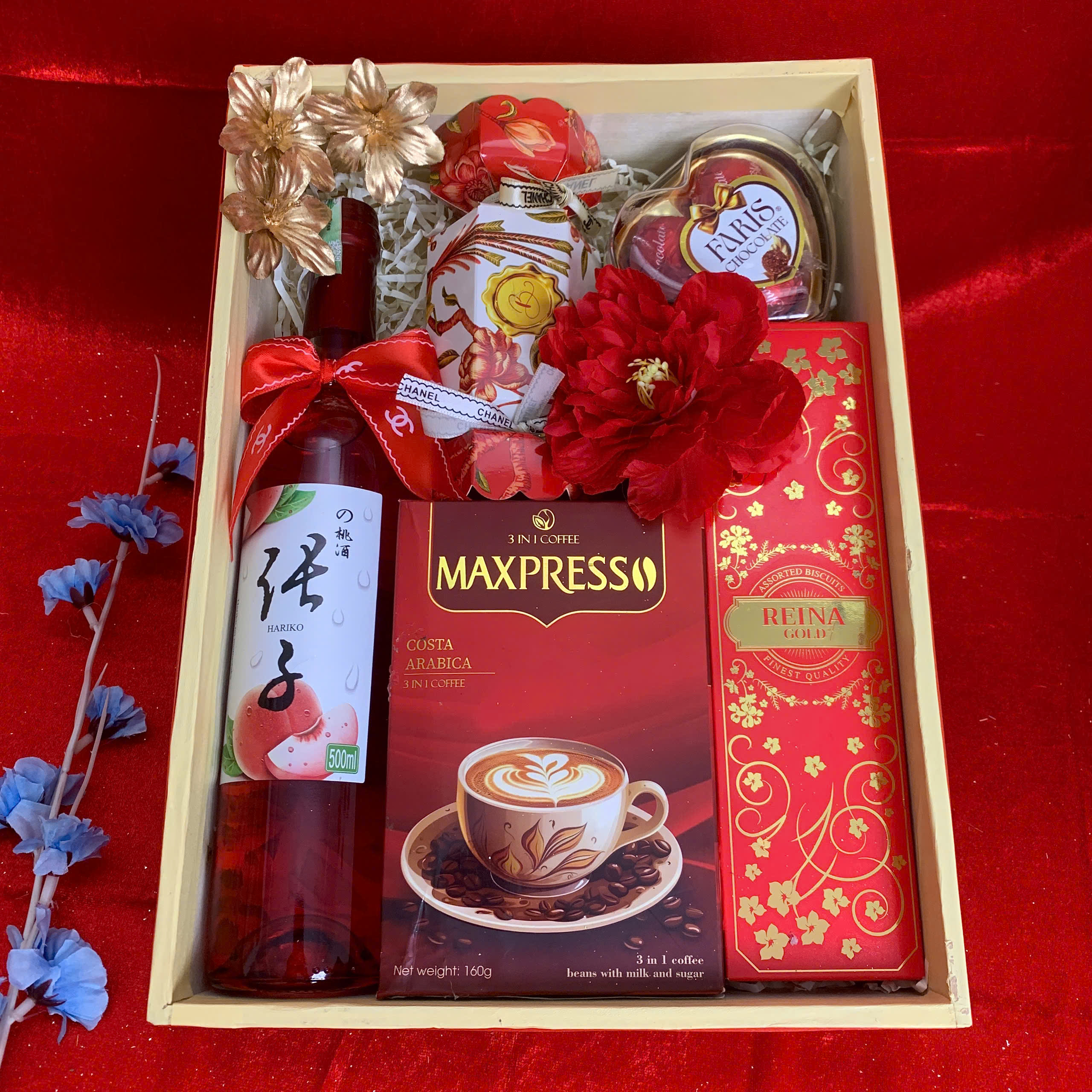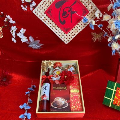- Thiết kế sang trọng: Hộp quà phối tông đỏ – vàng – xanh dương, tượng trưng cho may mắn, tài lộc và thịnh vượng.