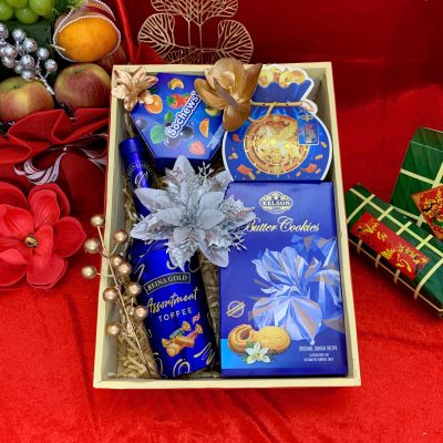 - Thiết kế sang trọng: Hộp quà phối tông đỏ – vàng – xanh dương, tượng trưng cho may mắn, tài lộc và thịnh vượng.
