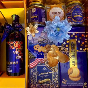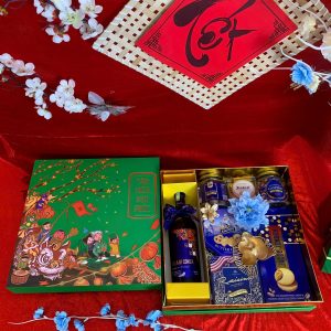 - Thiết kế sang trọng: Hộp quà phối tông đỏ – vàng – xanh dương, tượng trưng cho may mắn, tài lộc và thịnh vượng.