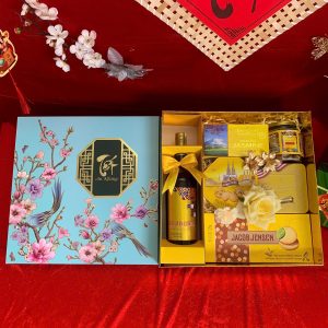 - Thiết kế sang trọng: Hộp quà phối tông đỏ – vàng – xanh dương, tượng trưng cho may mắn, tài lộc và thịnh vượng.