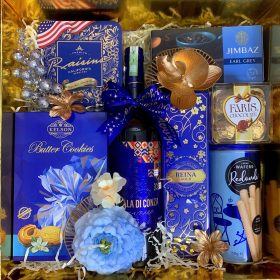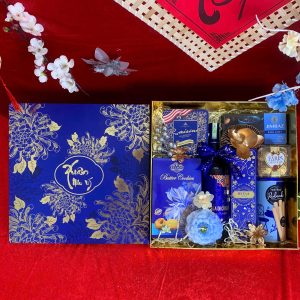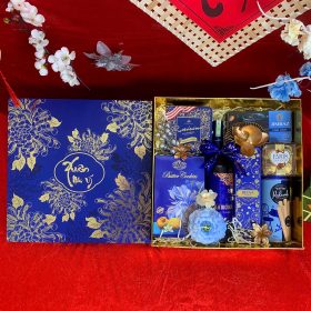 - Thiết kế sang trọng: Hộp quà phối tông đỏ – vàng – xanh dương, tượng trưng cho may mắn, tài lộc và thịnh vượng.