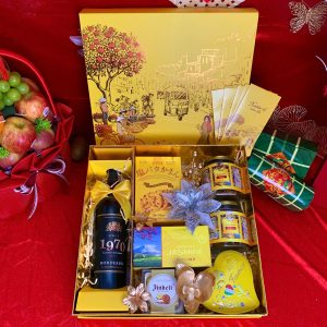 - Thiết kế sang trọng: Hộp quà phối tông đỏ – vàng – xanh dương, tượng trưng cho may mắn, tài lộc và thịnh vượng.