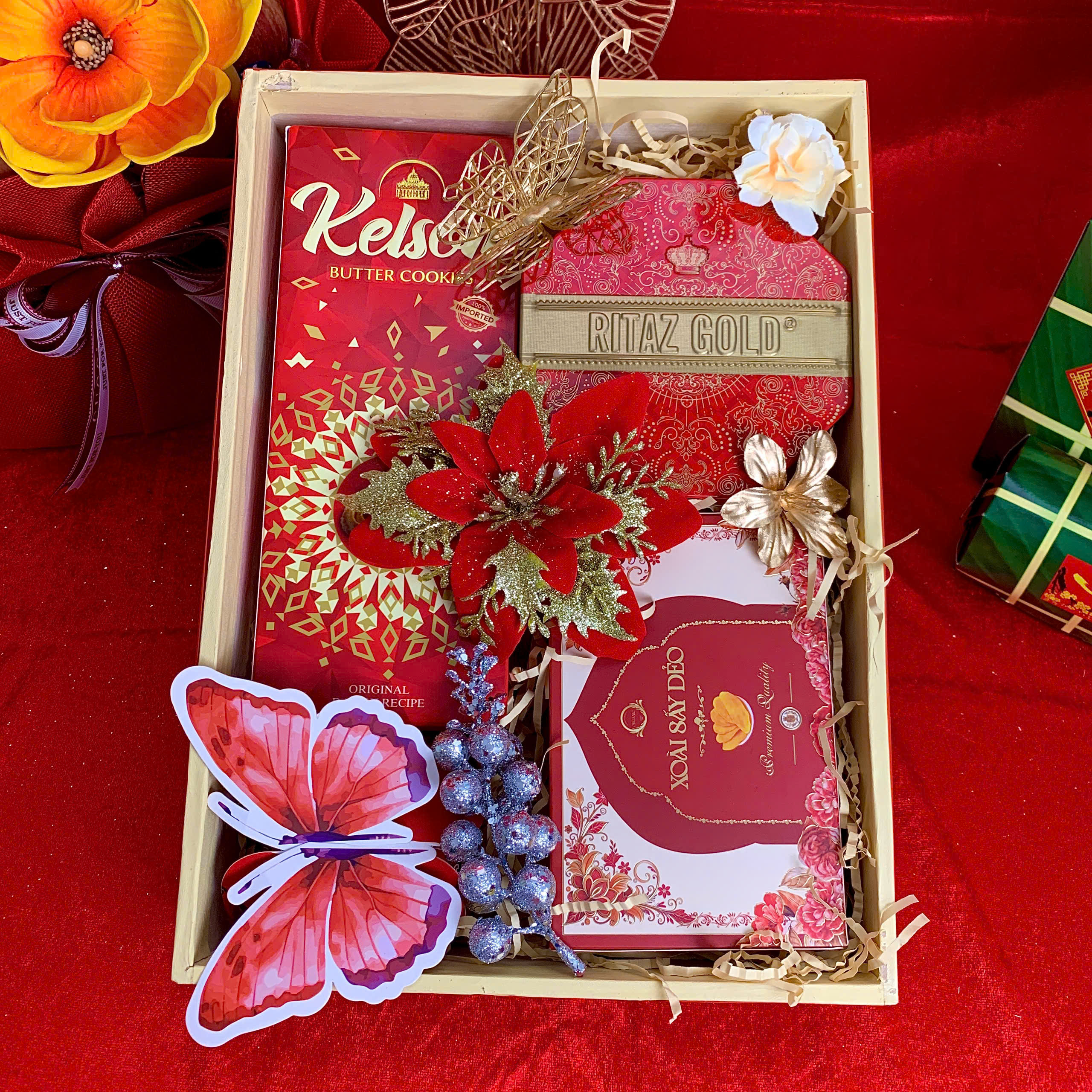 - Thiết kế sang trọng: Hộp quà phối tông đỏ – vàng – xanh dương, tượng trưng cho may mắn, tài lộc và thịnh vượng.